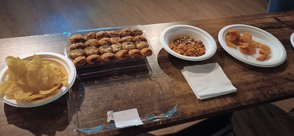 En cuanto al evento en sí, una de las mejores cosas que tiene es que, gracias a estos patrocinadores, cuando llegas te encuentras a alguien que directamente te da un ticket para una consumición gratuita y te encuentras las mesas llenas de picoteo. Es difícil empezar mejor. 😀