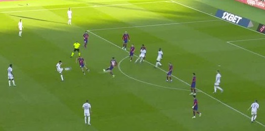 Durante los primeros sesenta minutos del Clásico el Barcelona ha dominado completamente al Real Madrid. El equipo blanco salía con otra de esas alineaciones extrañas en las que Ancelotti trata de colocar a la gente por orden de jerarquía en el vestuario en vez de por el mayor rendimiento que deberían dar en las posiciones idóneas para ellos.