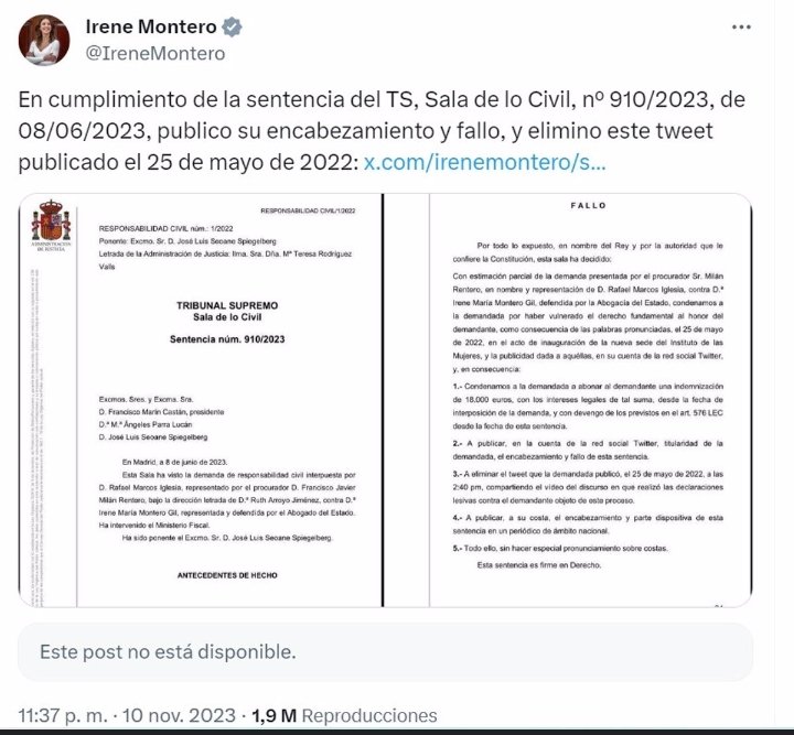 Uno de los privilegios que le concede su membresía en la casta es la de participar en programas de televisión solo por su nombre. A Irene Montero, desde luego, no la pueden invitar a ningún programa como experta en nada porque lo único que sabe es trepar en la política y lanzar diatribas que enardecen a sus seguidores. Salir en la tele le concede un altavoz para que exponga sus puntos de vista y una vez vistos no llego a otra conclusión más que a la evidente discapacidad intelectual de Irene Montero, una mujer capaz de decir en la misma frase que es mentira que esté condenada y reconocer que ha pagado la condena.