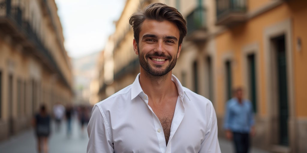 - Con el pecho al descubierto por ir con la camisa abierta (o el mono de trabajo).