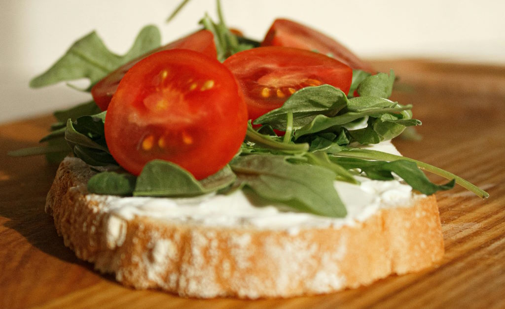 - Coloca la mezcla de tomate sobre las rebanadas de pan tostado.
