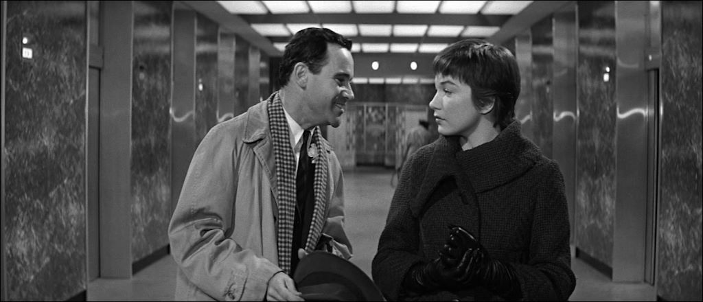 Por si no la has visto, yo te la resumo en un momento: la historia va de un oficinista americano de estos que trabajan en uno de los cientos de edificios de oficinas de Nueva York, la ascensorista de ese edificio y uno de los directivos. El oficinista, que es soltero, tiene un apartamento y los directivos de la empresa le están prometiendo un ascenso a cambio de que les deje el apartamento para llevar allí sus relaciones extramatrimoniales. Una de estas relaciones extramatrimoniales es la que tiene el director de la empresa con la ascensorista que le hace tilín al protagonista.