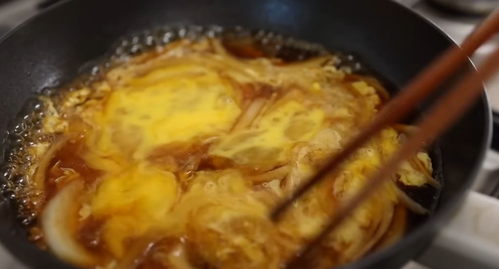 - No sobrecocines el huevo: El huevo debe estar suave y ligeramente líquido para que, al servirse sobre el arroz caliente, termine de cocerse con el calor residual. Esto contribuye a la textura sedosa característica del katsudon.