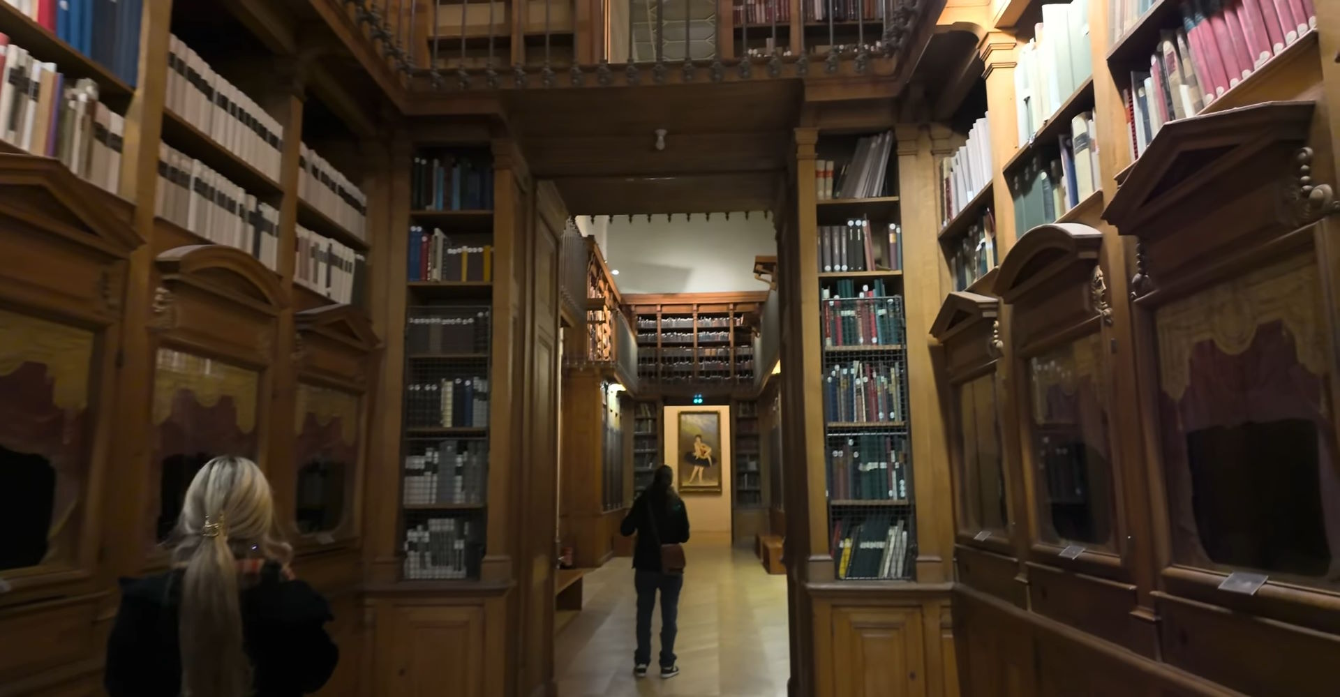 La iluminación es especialmente notoria aquí, con candelabros de cristal que reflejan y multiplican la luz, creando un ambiente casi etéreo. El efecto completo es el de entrar en un mundo aparte, un mundo donde el arte y la cultura son sagrados.