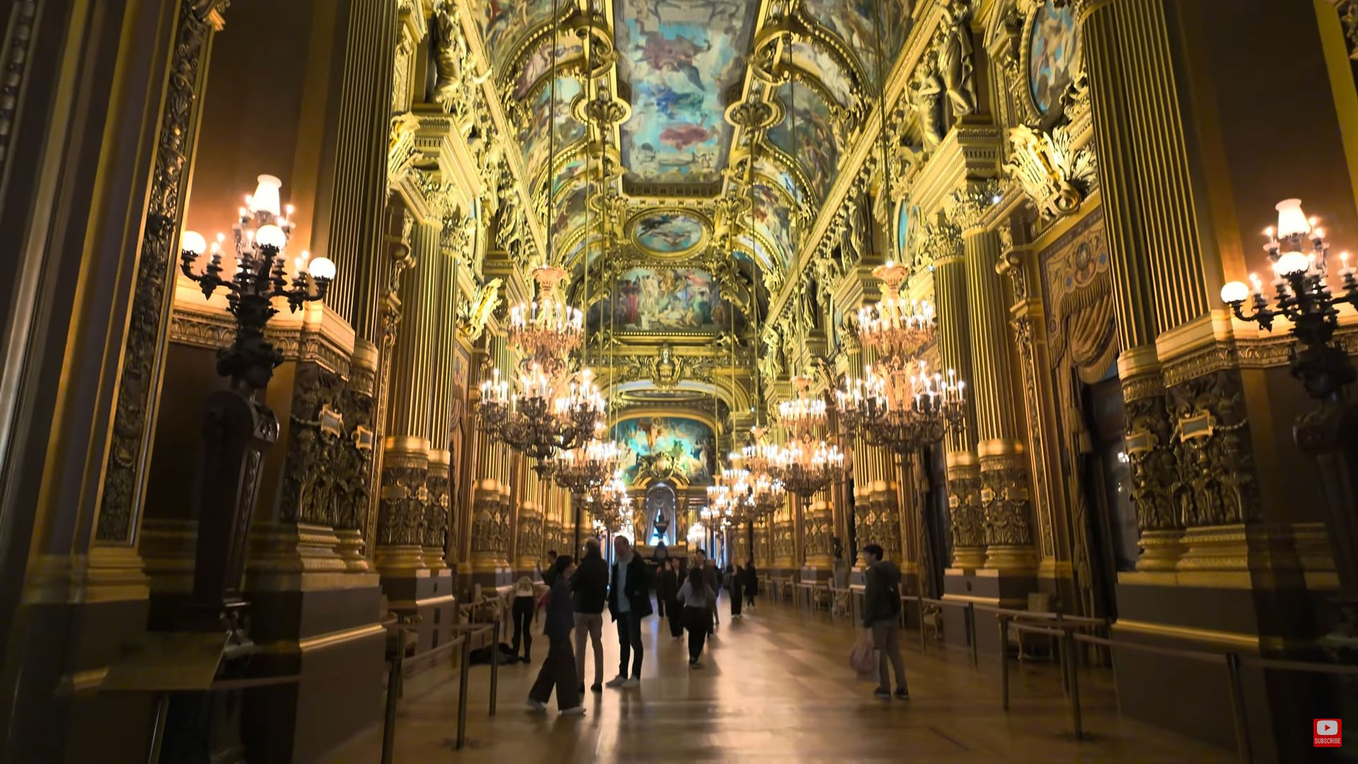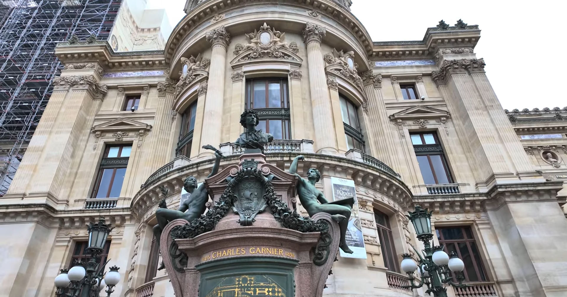 La fachada del edificio es especialmente notable por su uso de materiales lujosos y su intrincada decoración, que incluye varias referencias a la música y a la mitología clásica. El interior, con su famosa Gran Escalera, el auditorio revestido de terciopelo rojo y el impresionante techo pintado por Marc Chagall en el siglo XX, sigue asombrando a visitantes de todo el mundo.