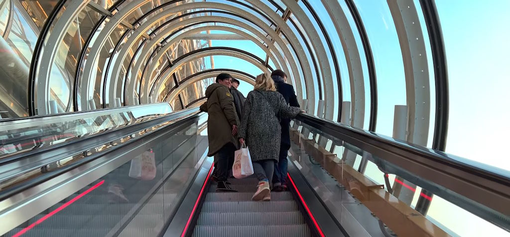 Uno de los elementos más emblemáticos del diseño interior es la escalera mecánica exterior, alojada en tubos transparentes que serpentean a lo largo de la fachada. Esta escalera no solo ofrece un medio de circulación eficiente, sino que también proporciona a los visitantes vistas panorámicas de París, convirtiéndose en parte de la experiencia cultural del centro.