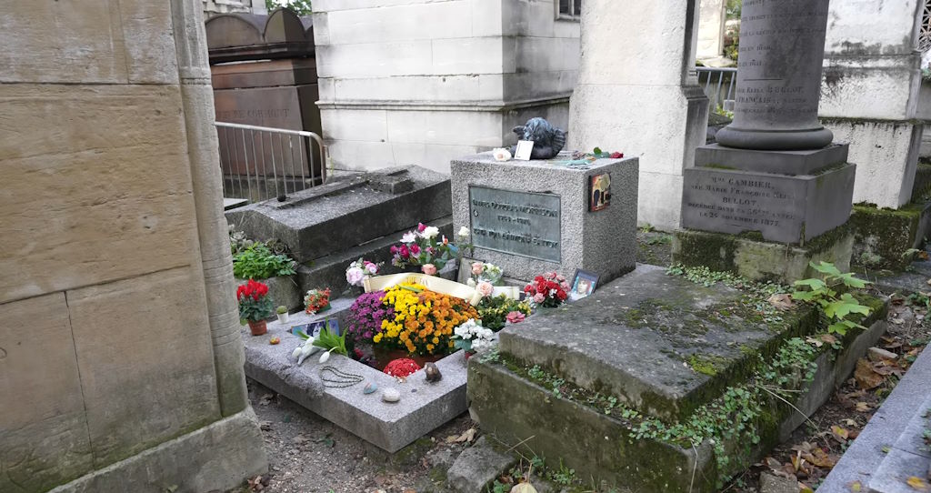 - Tumba de Jim Morrison: El líder de The Doors fue enterrado en Père Lachaise en 1971, y su tumba se ha convertido en un lugar de peregrinación para los fans del rock. Aunque la tumba en sí es relativamente modesta, está constantemente decorada con flores, cartas y otros tributos de sus seguidores.